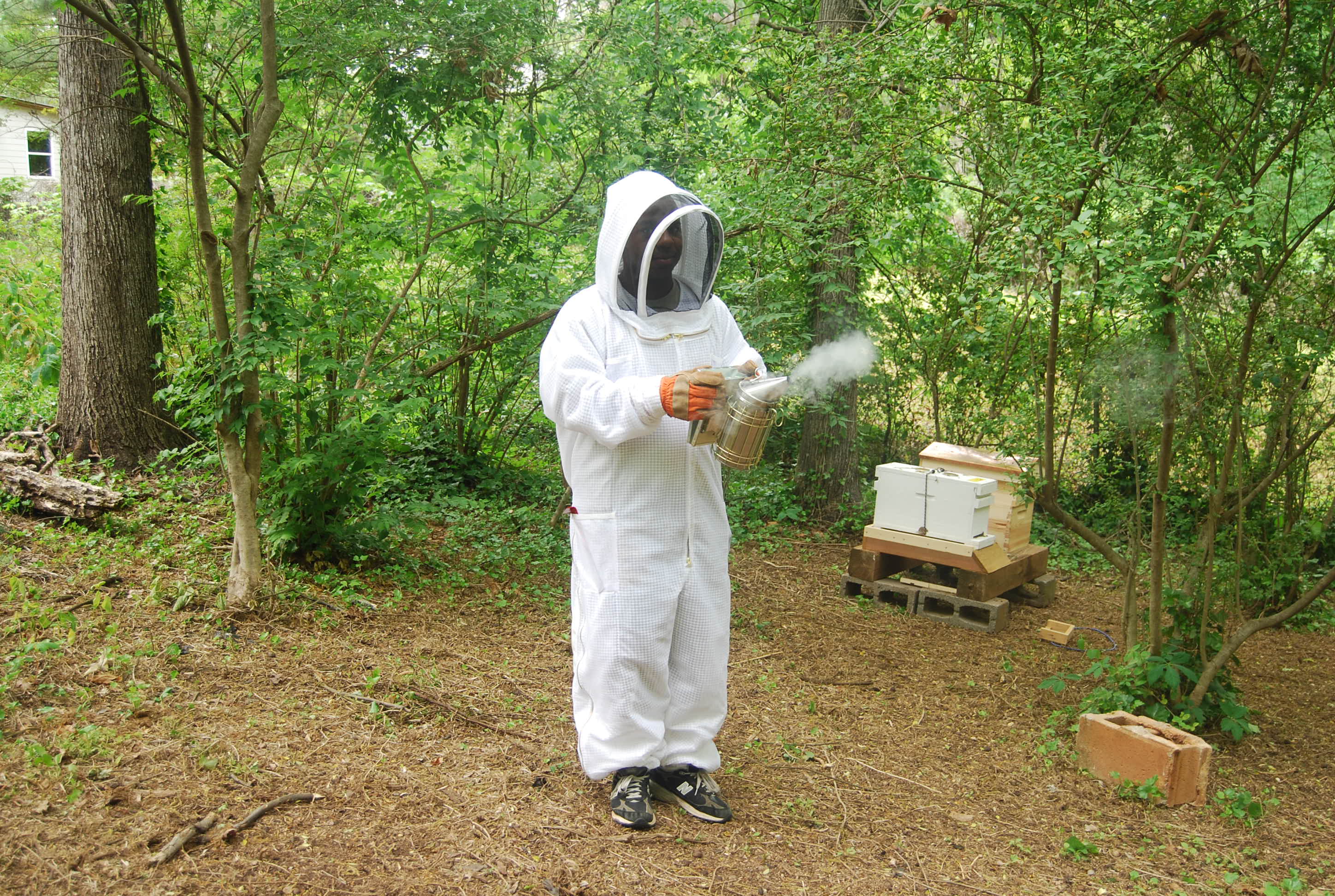 The African American Beekeeper in an “Ultra Breeze Bee Suit.” This bee suit kept me safe and confident while working the bees. Absolutely, no stings!!!