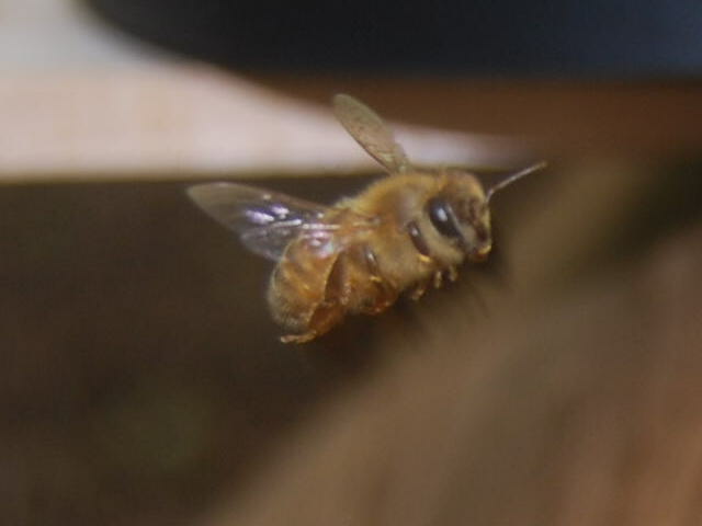 Worker Bee Leaving the Hive to Forage for Pollen, Nectar, or Water.